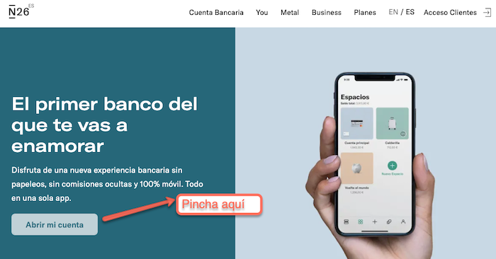 Entra en www.n26.com y pincha en ‘abrir mi cuenta’