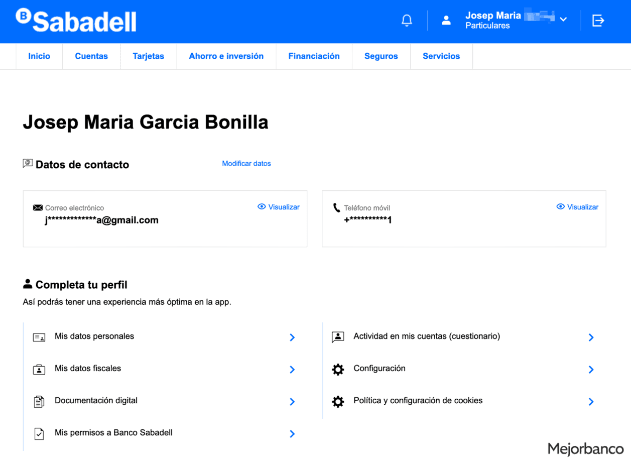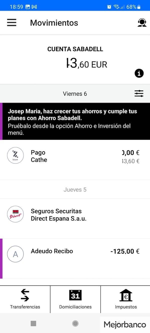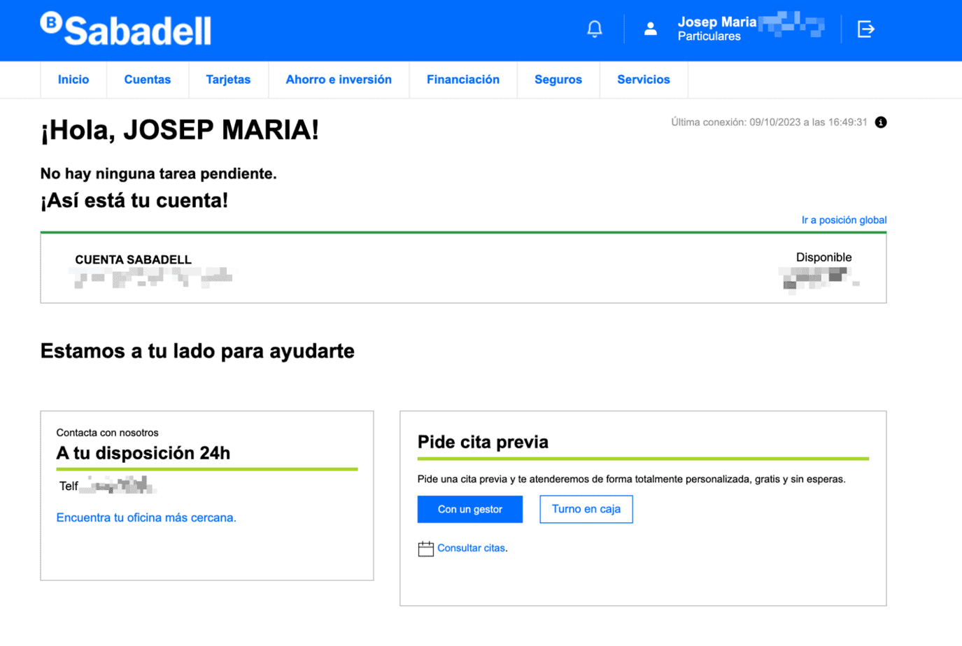 Te dejo un par de capturas de pantalla para demostrarte que soy, en realidad, cliente del Banco Sabadell.